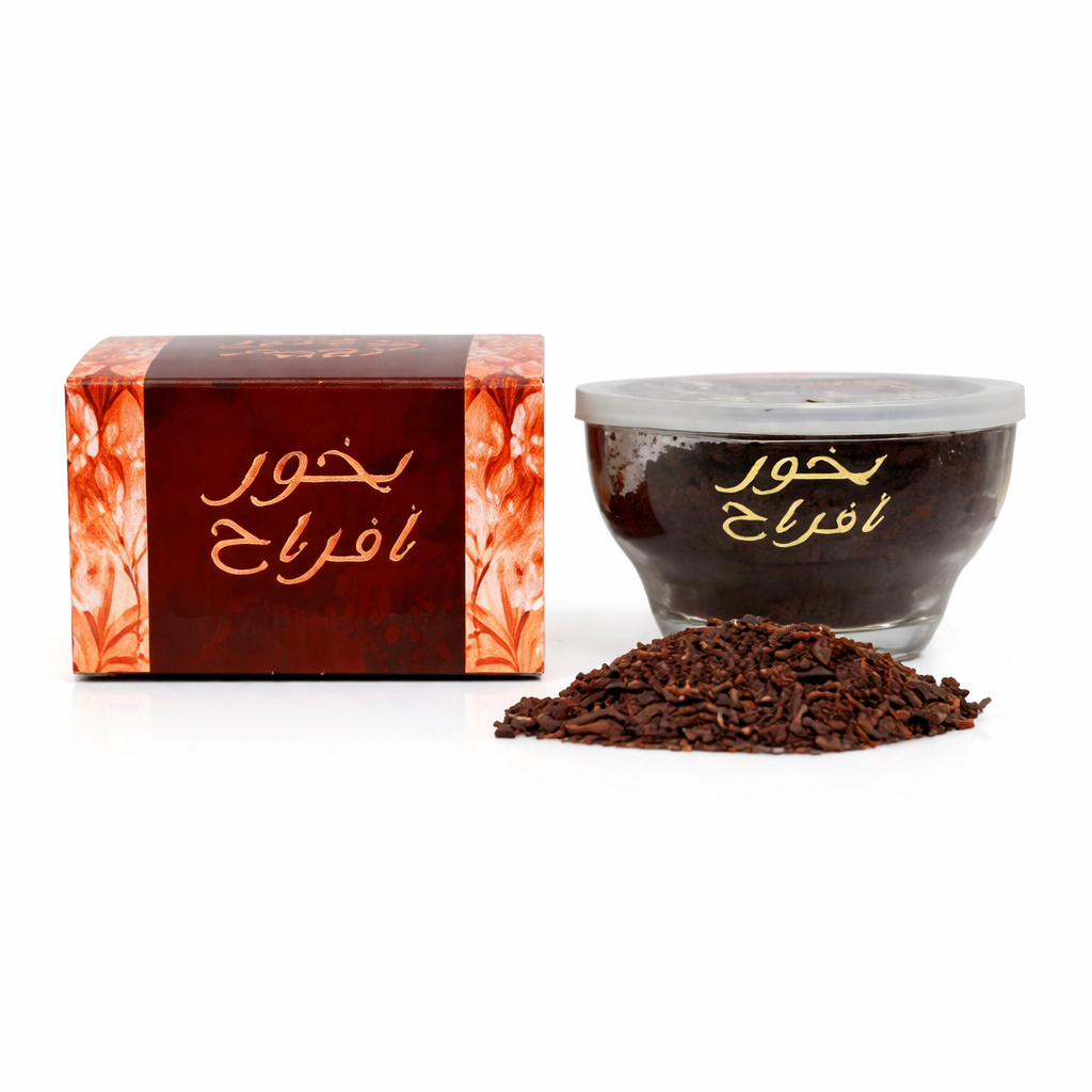 بخور أفراح برائحة شرقية مبهجة تم إعدادها خصيصًا لتناسب أجواء الفرح والمناسبات السعيدة. يتميز بعطره المتوازن الذي ينتشر بثبات ويمنح المكان إحساسًا بالبهجة والدفء دون أن يكون حادًا أو مزعجًا.